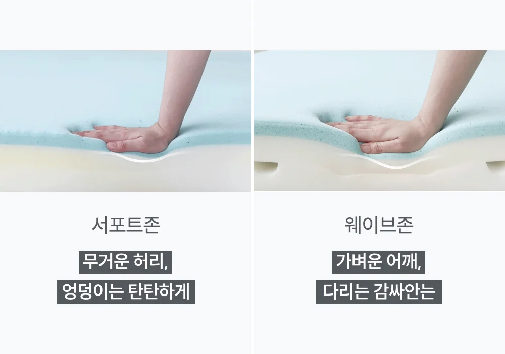 하지만 최근의 기술력이 집약된 프리미엄 토퍼는 매트리스에 들어가는 고밀도 폼의 '알짜 레이어'만을 고도로 압축하여 담아냅니다. 하이테크 트랜지션 설계를 통해 한정된 두께 안에서도 무거운 허리를 탄탄하게 밀어 올리고, 가벼운 어깨는 포근하게 감싸주어 얇은 두께의 물리적 한계를 최첨단 기술력으로 완벽히 극복해 냈습니다.