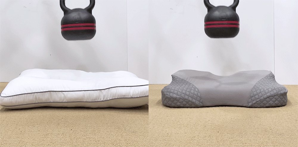 경추를 단단하게 위로 받쳐주는 지지력이 전혀 없어 누우면 푹 꺼집니다.