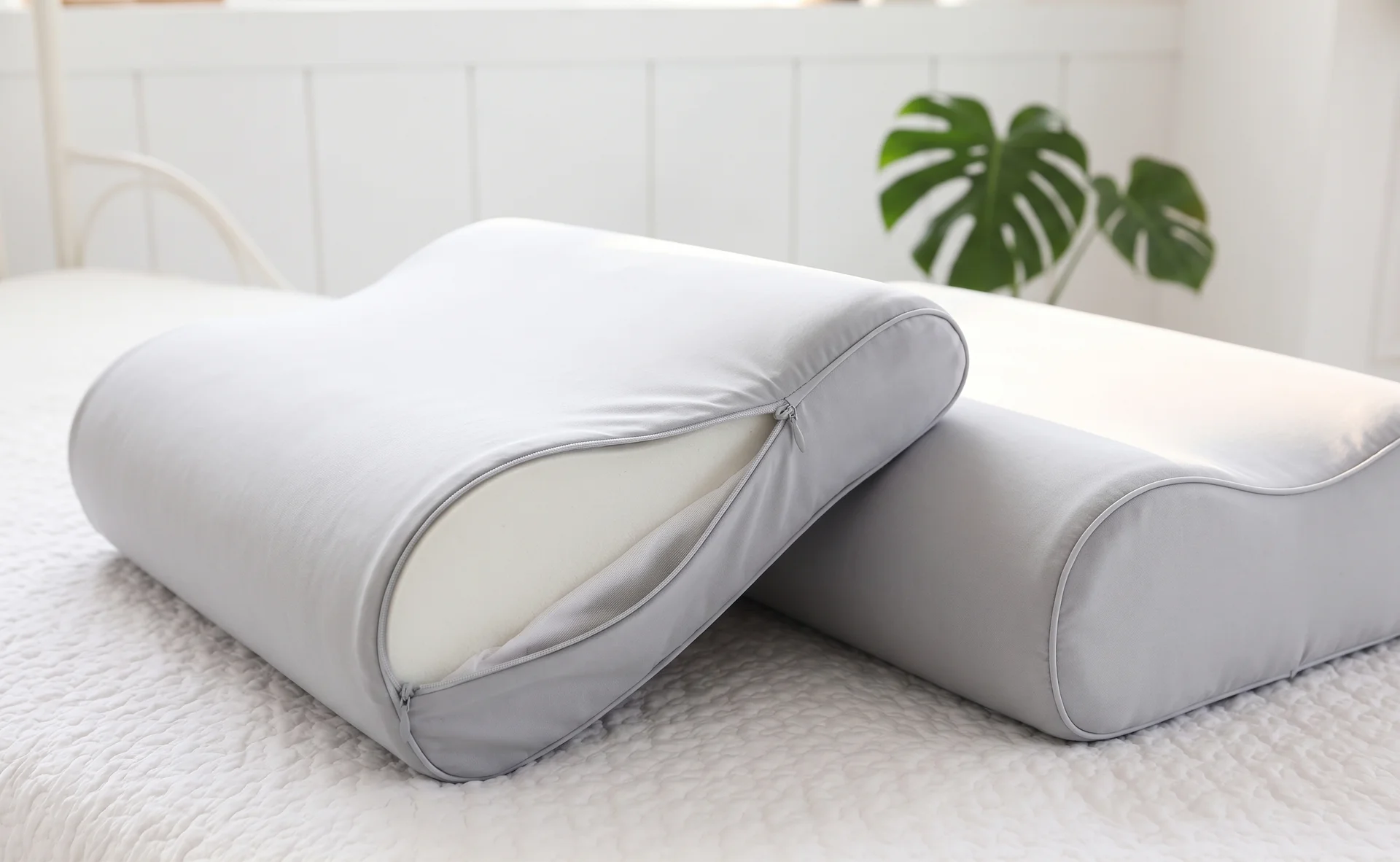 머리가 닿는 후두부 부분은 낮게 쏙 들어가고, 목이 닿는 경추 부분은 부드럽게 위로 받쳐주어 수면 중에도 자연스러운 경추전만(C커브)이 스스로 유지되어야 합니다.