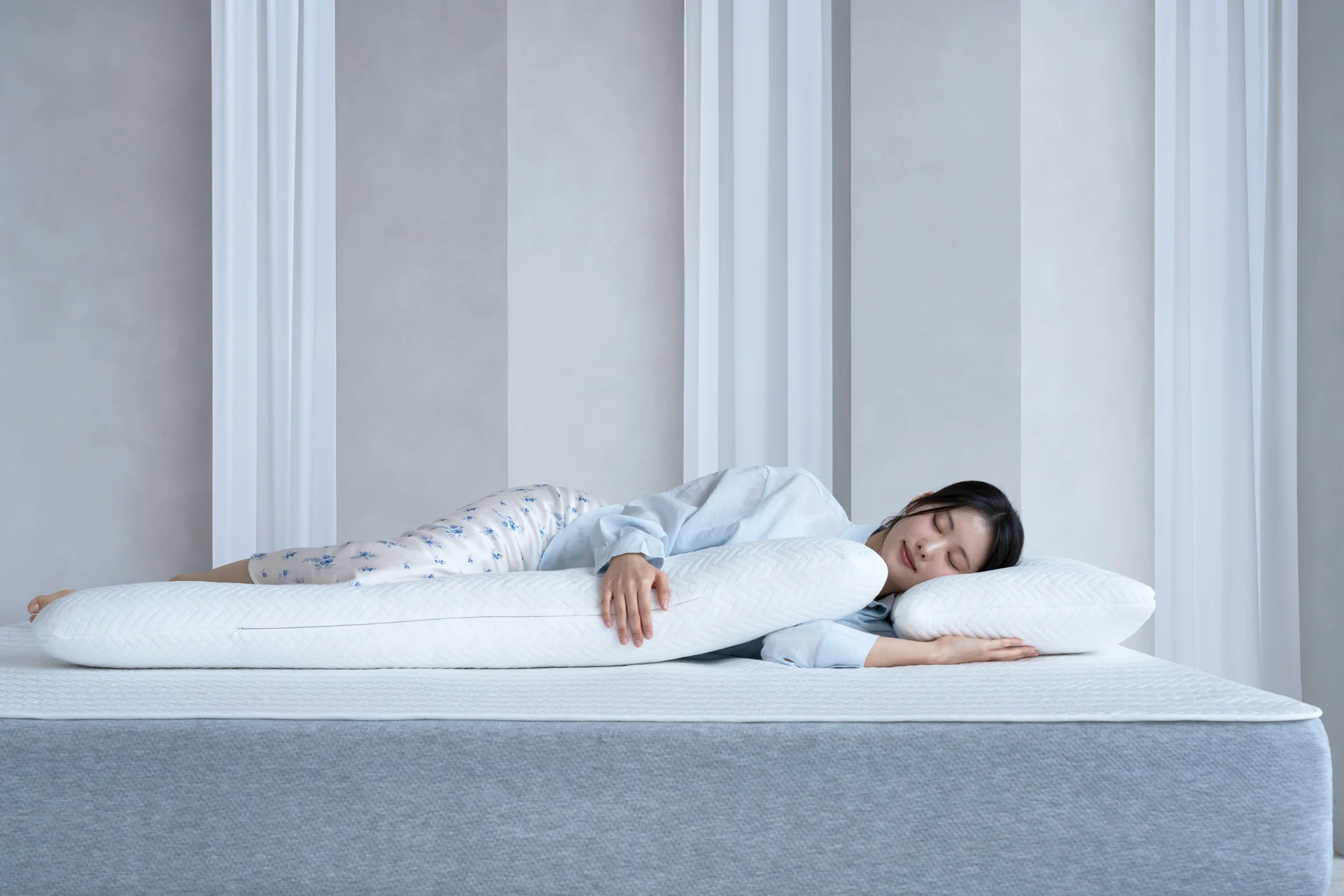 일반 바디필로우보다 훨씬 긴 P자형 디자인으로, 열이 잘 뭉치는 허벅지와 팔 안쪽을 즉시 식혀줍니다.