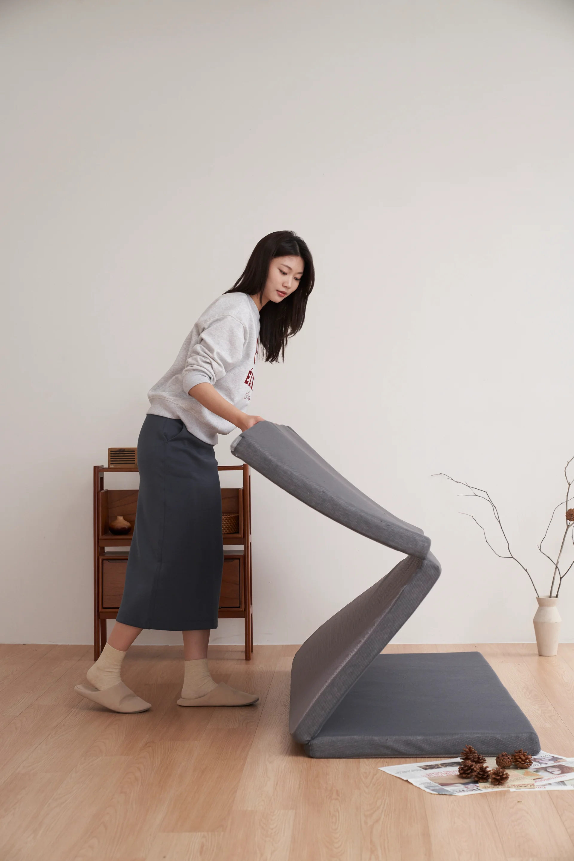 낮이나 손님 방문 시에는 간편하게 접어서 안락한 '좌식 소파'로, 밤에는 넓게 펼쳐 프리미엄 침대로 변신합니다.